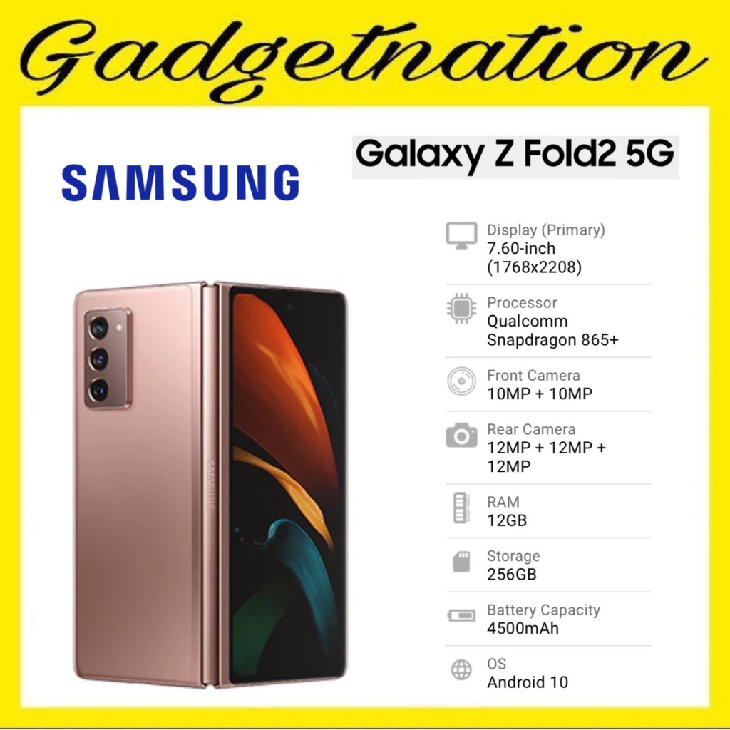 The Galaxy Z Fold2 is available in Mystic Black and Mystic Bronze at RRP RM 7999. Samsung Galaxy Z Fold 2 Price is MYR7443 in MalaysiaThe Samsung Galaxy Z Fold 2 5G Released in September 2020 with 76 inches Foldable Dynamic AMOLED 120Hz display Android 10 triple Rear Dual Front Camera Qualcomm SM8250 Snapdragon 865 7 nm Chipset 12GB RAM and 256GB512GB ROM 4500 mAh Li-Po Battery. Heres everything you need to know about the Galaxy Z Fold 2 in Malaysia.